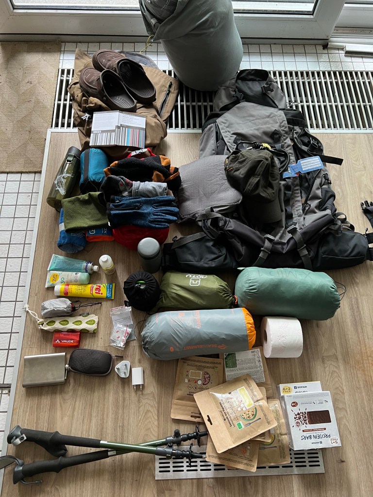 Packed everything — total of 12.8kg to carry. Lighter than last year … but not as much as I hoped for 😥.