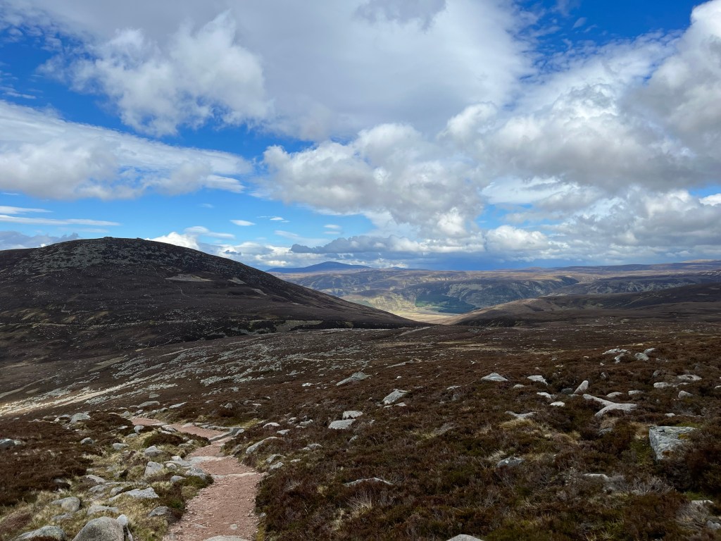 Also, if something looks like a cool route, but has absolutely no path and goes though the peat, then it is not a good idea. My 10k from the Shieling of Marks bothy to the base of Mount Keen were so unbelievably strenuous … and I was lucky as it had not rained for several days – otherwise the peat mud would probably have swallowed me or worn out before I could have reached safe terrain.
