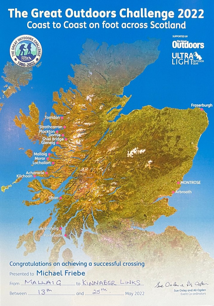 Learned: my sleeping bag was not sufficient, the tent was too small (thanks Gordon for the tent company you recommended … will get one!), the first two days were planned too strenuous. The break day in Braemar saved me .. it helped me to recover … especially my poor feet needed some rest in CROCS. Lot of the challengers liked to leave early, while I actually rarely started before 08:30 — with 9/10 hours to go that still allowed me to setup the tent, cook and get ready easily before 21:00 … if you arrive at 14:00 you still have 6/7 hours in the wilderness before going to bed. Not so easy! Another thing I should do is to get the locations of the MBA and open bothy’s and plan them in as potential alternatives or at least for cooking. Another thing that I would like to do is spend a night at Lochcallater Lodge and at St. Drostan … next time.