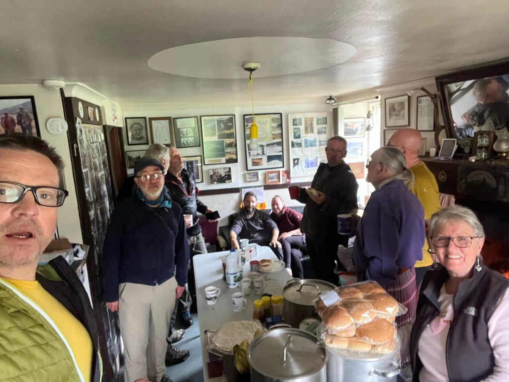 Tea and Bacon Sandwich at 08:00 at the busy Callater Lodge — some challengers only slept a couple of hours — see yesterday’s post