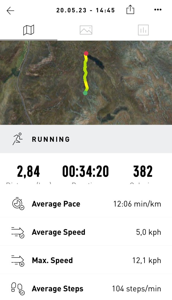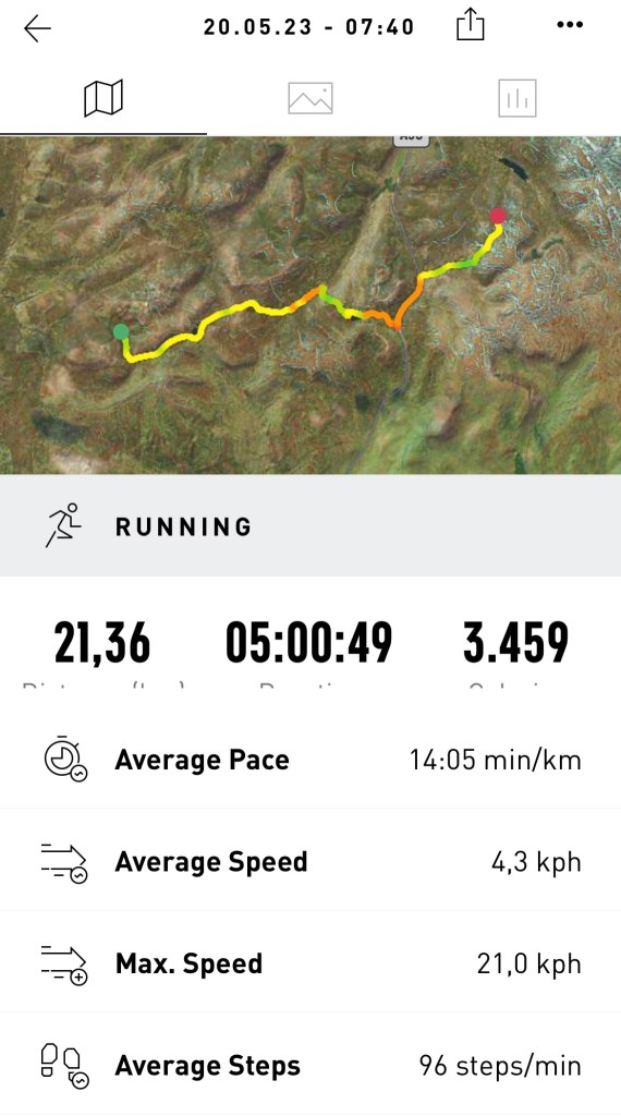 It was a really nice walking day and the last with some challenging hills to cover. It ended up to be 23km and quite a bit of up and down plus a lot of path searching and about 3km through peat and bog.