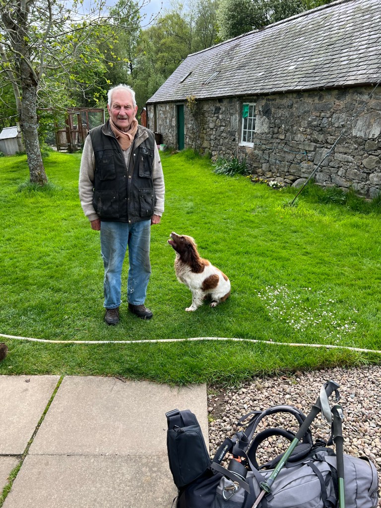 Angus, the 92 yoa former sheep farmer and his 3 legged dog — had tea with him!