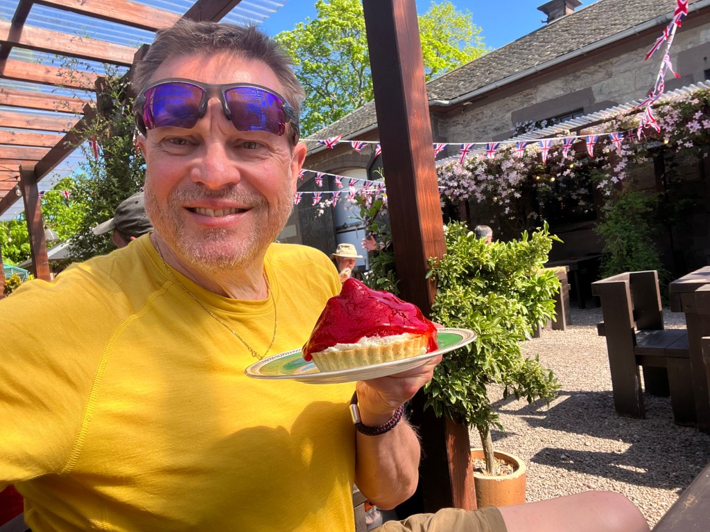 What another great day — weather and mood wise. I left my camping site at around 09:30 and was at the CHARLTON FRUIT FARM about an hour later for a full scotish breakfast and a strawberry tart.